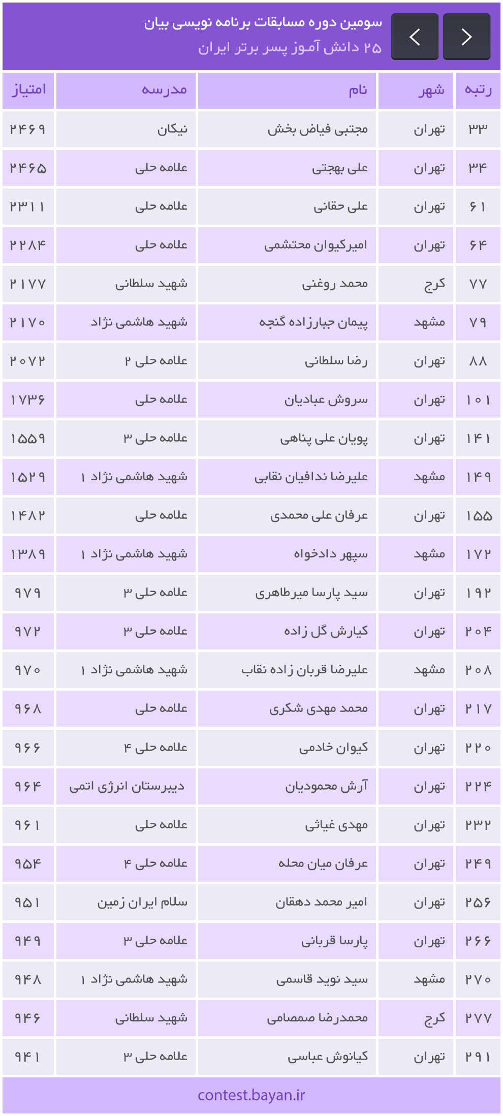 - کلیه شرکت کنندگان در هر یک از مراحل ادوار مختلف مسابقات برنامه نویسی بیان میتوانند با بهره مندی از بیشترین تخفیف پیش بینی شده در این مراسم حضور یابند. تعداد نفراتی که می توانند از این تخفیف استفاده کنند به 200 نفر محدود شده است و بر اساس زمان تهیه بلیط ظرفیت تکمیل خواهد شد.
